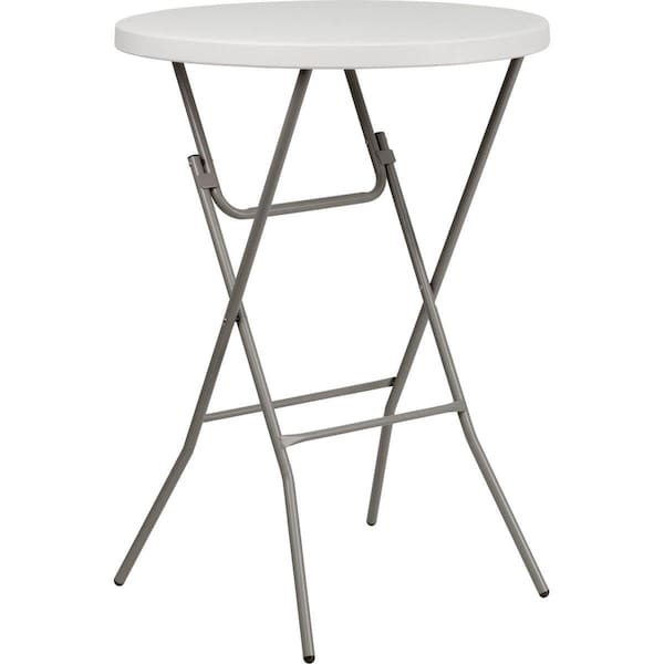 32 in. Plastic Flash Furniture Round Bar Height Folding Table, White