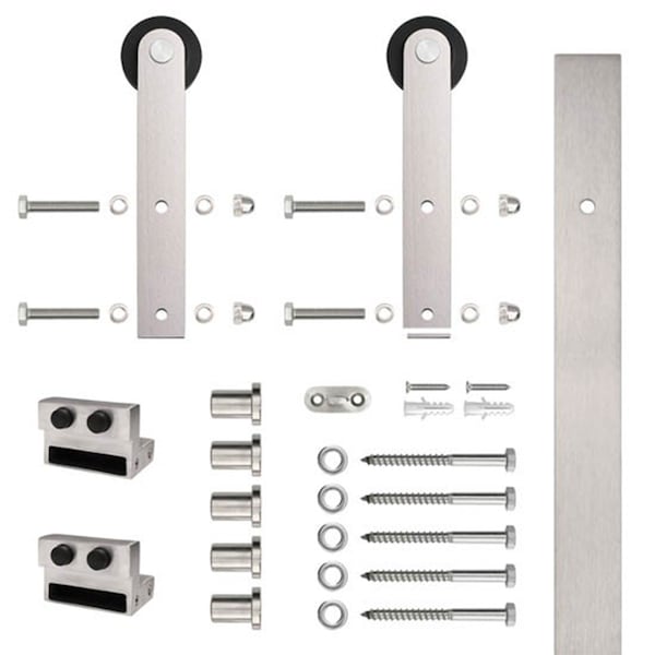 The Stainless Glide Stainless Steel Sliding Door Hardware gives an elegant look without the expensive price tag. Made of the industrial standard 304 stainless, these kits come ready to quickly install. Our top mount hardware (for wood doors only), available in three styles, is strong enough to hold up to a 250 lbs. door. Our door strap hardware with three styles available, come ready to mount to a wood or glass door. With easy-to-follow installation instructions any one can mount these kits and quickly add class to any room.
