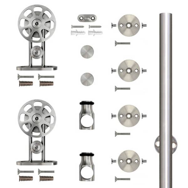 Stainless Steel 96" Top Mount Spoke Wheel Sliding Door Hardware