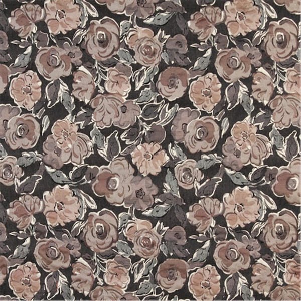 54 in. Wide Grey- Off White- Beige And Rose- Flower Patterned Upholstery Fabric