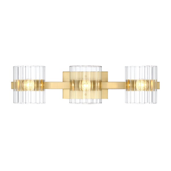 Aries 24.25in 3-Light Brushed Gold Transitional Indoor Vanity Light with Ribbed Glass Shades