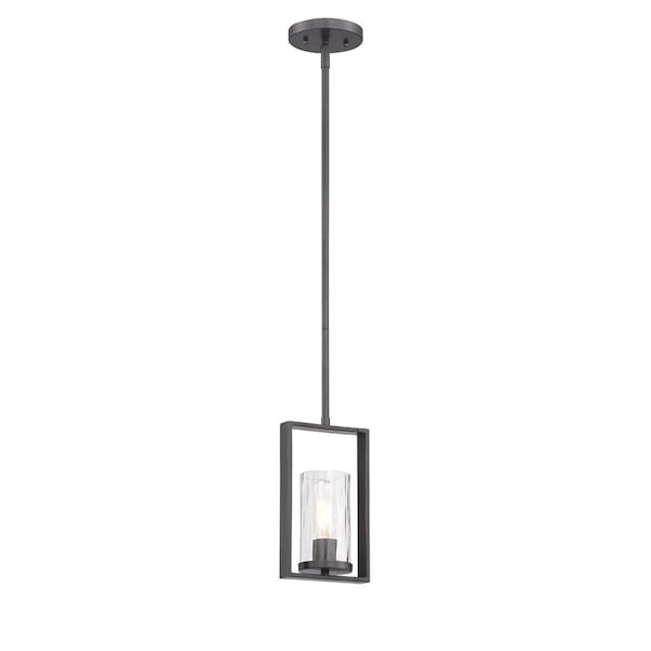 Elements 60 Watt 1 Light Charcoal Mini-Pendant with Rain Glass Shade