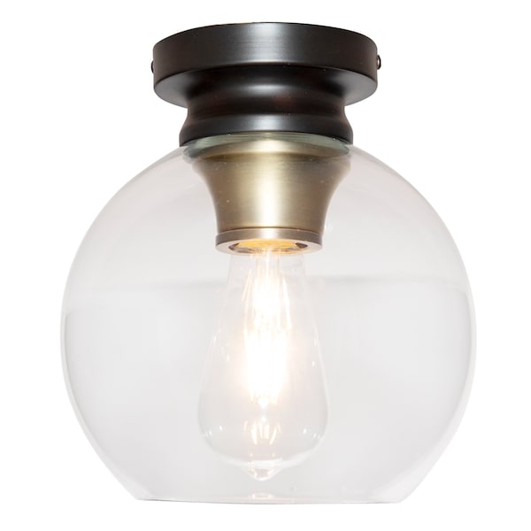Ella 8.25in 1-Light Vintage Bronze Flush Mount Ceiling Light with Clear Glass Shade
