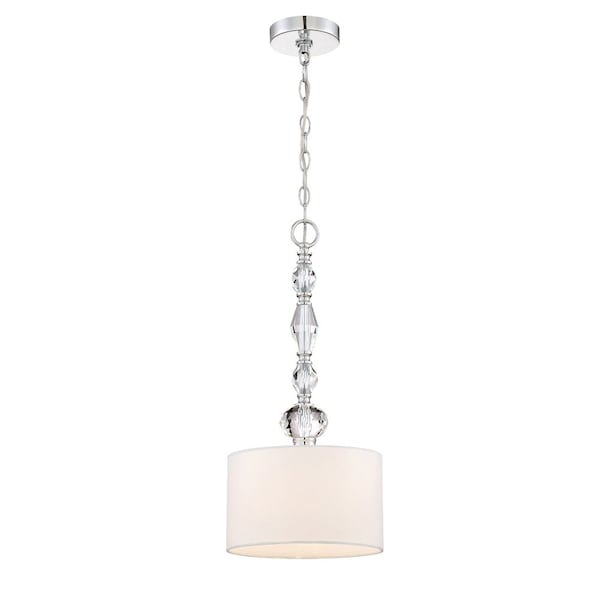 Evi 100 Watt 1 Light Chrome Mini-Pendant with White Linen Shade