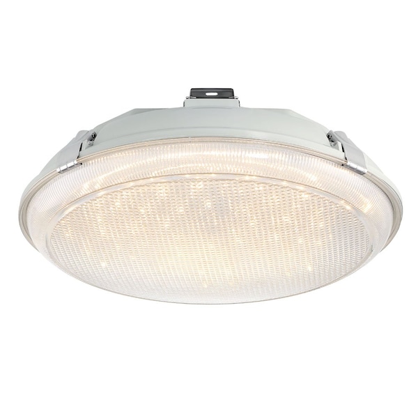 Easily brighten up your outdoor space with this 14 in. Light Gray LED Outdoor Bug-Proof Ceiling Flush Mount Lamp with Cord and Plug. It is designed to use 85% less electricity. It could help you save on your power bill. Easily install this light in a ceiling mounted or suspended position.