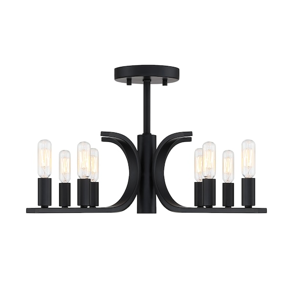 Skye 22.75 in. 8-Light Matte Black Minimalist Semi Flush Mount with Bare Bulbs for Dining Rooms