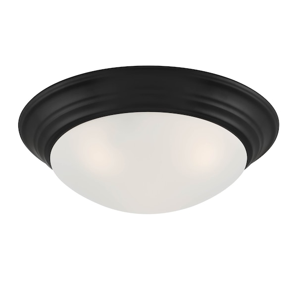 Tap 14in 2-Light Matte Black Flush Mount with Etched Glass Shade