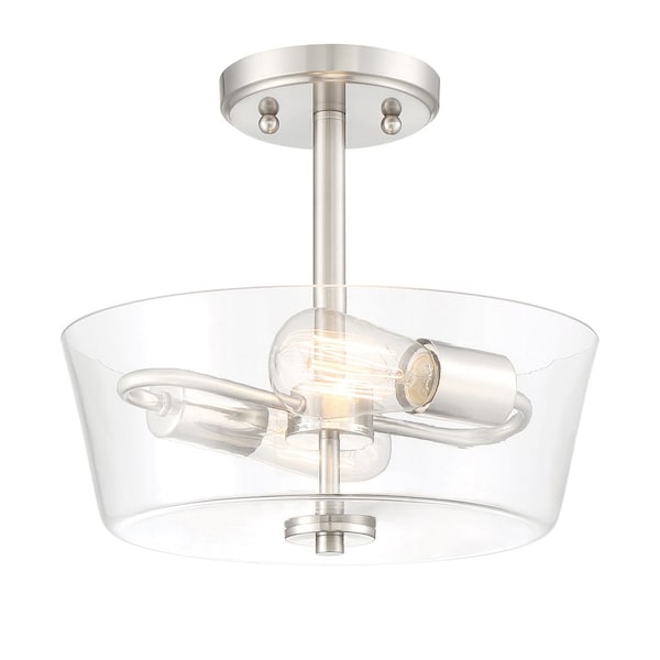 Westin 12in 2-Light Satin Platinum Modern Industrial Ceiling Light Semi Flush Mount