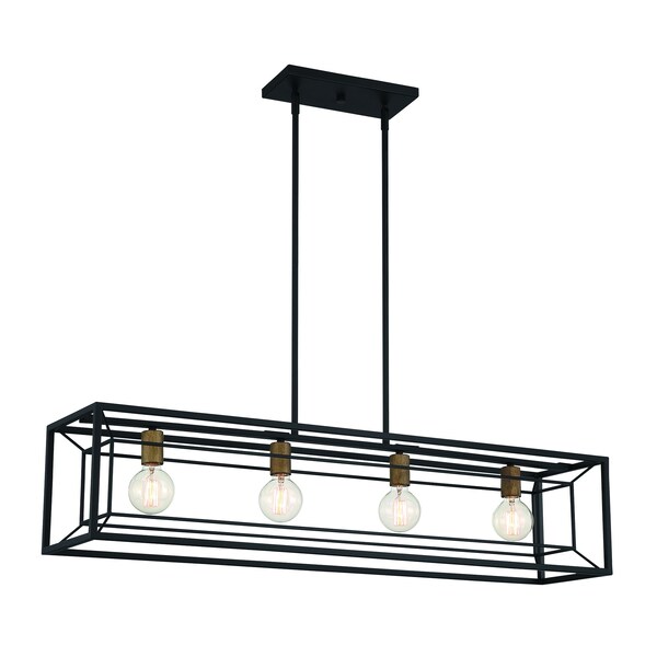 Within 60 Watt 4 Light Matte Black Linear Pendant with Cage Shade