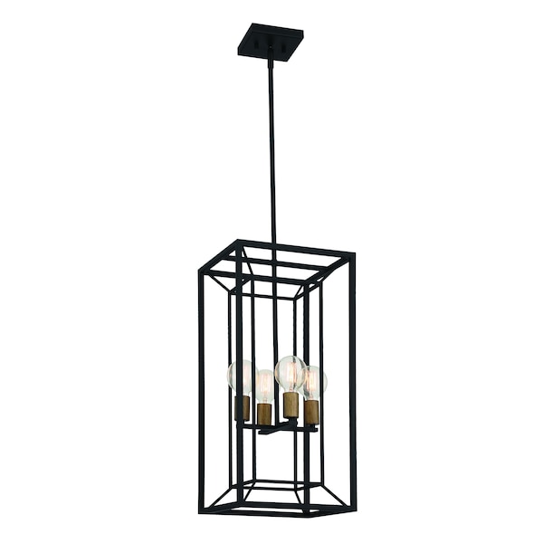 Within 60 Watt 4 Light Matte Black Pendant with Cage Shade