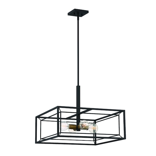 Within 60 Watt 4 Light Matte Black Pendant with Cage Shade