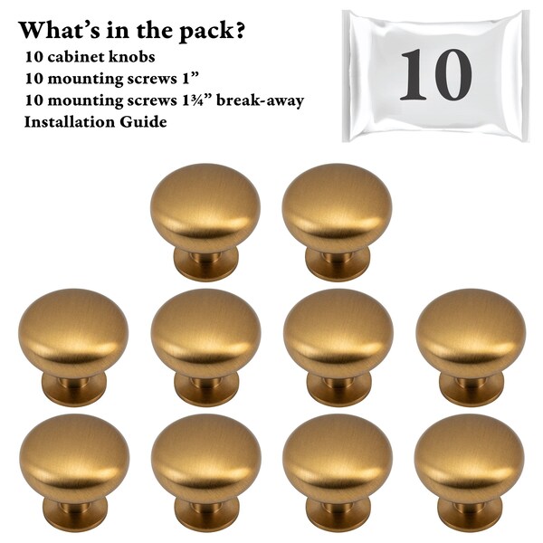 Upgrade your interior spaces with this 10-pack of 1-3/16 diameter mushroom cabinet knobs from DesignPerfect. These knobs boast a timeless and elegant design that complements a wide range of interior styles and is an ideal choice to refresh kitchen cabinets and bathroom vanities. The DesignPerfect cabinet knobs are available in multiple finishes to match your specific design vision. DesignPerfect specializes in decorative hardware items that are both functional as well as beautiful.
