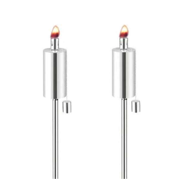 Two Stainless Steel Cylinder Shaped Anywhere Garden Tiki Torches, 2Pk