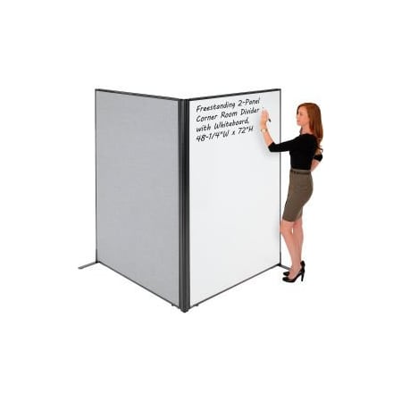 Interion Freestanding 2-Panel Corner Room Divider with Whiteboard, 48-1/4"W x 72"H, Gray