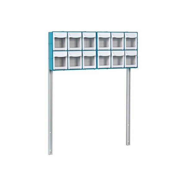 Detecto 12-bin organizer with accessory bridge features: detecto medical cart accessory detecto 12-bin organizer with accessory bridge material: abs tilt bins overhead installation allows easy access to supplies dimensions: 23.6 in w x 3.3 in d x 9.8 in h / 60 cm w x 8.4 cm d x 24.9 cm h ship weight: 6 lb plus 2 lb for accessory bridge