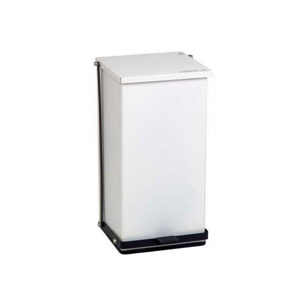Detecto white baked epoxy steel step-on can, 48 quart named for their rugged toughness, detecto step-on cans are perfect for hospitals, doctors' offices, patients' rooms, and laboratory settings. Equipped with a heavy-duty foot pedal and linkage and a bag securing mechanism. The cans are flame retardant, have a self closing lid for sanitation, baked epoxy steel or stainless steel finish for easy cleaning, and full width hinges and unitized construction for long-term use. Detecto also includes free bio-hazard and infectious waste adhesive labels to meet osha labeling requirements. Ul listed.