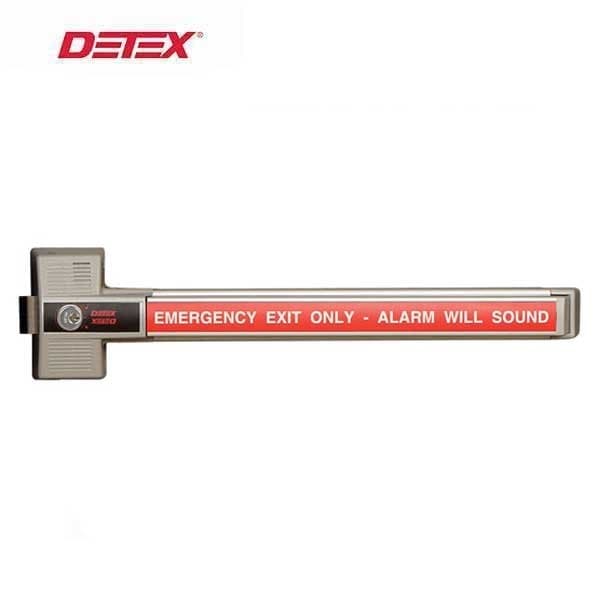 SINGLE-POINT ALARMED DEADBOLT ONLY, EXIT CONTROL LOCK, UL LISTED PANIC HARDWARE. SUPPLIED WITH 9-VOLT BATTERY. FITS 36" TO 48" DOOR (STANDARD). AVAILABLE IN GRAY (STANDARD). ENGLISH PUSH PLATE SIGN (RWE STANDARD) OR SPANISH PUSH PLATE SIGN (RWS OPTION). OTHER LANGUAGES AVAILABLE - CALL FACTORY. SHIPPED LESS RIM CYLINDER - RIM CYLINDER AVAILABLE AT ADDITIONAL COST (SEE "OPTIONS" BELOW)