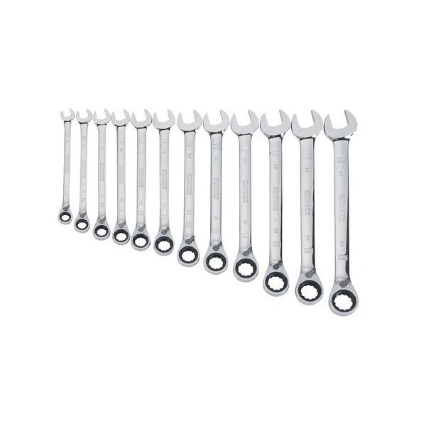 The 12 Piece Full Polish Reversible Ratcheting Wrench set offers a variety of wrenches for any user need. These wrenches have 72 teeth for a 5 degree arc swing.