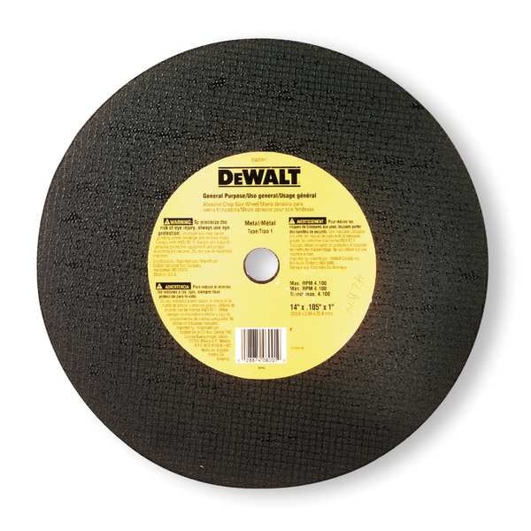 The DEWALT DW8001B4 is a 14-inch abrasive cut-off wheel intended for use with chop saws on ferrous metals, including steel. This general purpose wheel features an aluminum oxide abrasive and is suitable for cutting applications requiring durability and consistency.