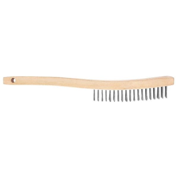 Scratch Brush, Bristle Firmness Stiff, Handle Style Curved, Bristle Material Stainless Steel, Handle Material Plastic, Brush Length 1 1/8 in, Handle Length 7 in, Head Width 3 in, Bristle Color Gray, Overall Length 7 in, Brush Type Wire Scratch Brush, Head Length 1 1/8 in, Sweep Face 3 in, Grip Material Plastic, FDA Compliant No, Color Coding System No