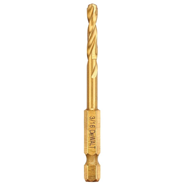 Hex Shank Drill Bit, 3/16 in, TiN, Package Quantity 6