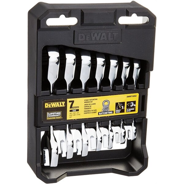 7pc Stubby SAE Ratcheting Wrench Set; SAE 3/8, 7/16, 1/2, 9/16, 5/8, 11/16, 3/4" (Discontinued)