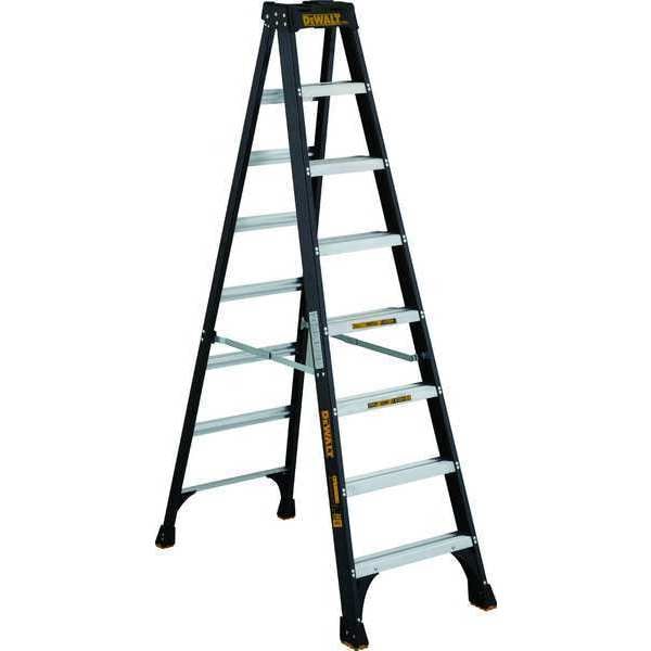 This 8 foot non-conductive DEWALT fiberglass step ladder has a load capacity of 300lbs, rated ANSI Type IA. This ladder features an innovative top with magnet and multiple tool slots, 25% greater step surface, an impact absorption system, heavy duty boots with non-marring bonded tread mechanically fastened to the upper boot to create a secure slip-resistant footing, inside spreader braces, wide back braces, and double-rivet step construction. This DEWALT DXL3010-08 step ladder meets or exceeds the safety standards set by ANSI, CSA, and OSHA.