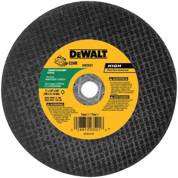 Abrasive Cut-Off Wheel, Type 1, 7 in Dia, 0.125 in Thick, 5/8 in Arbor Hole Size, Silicon Carbide