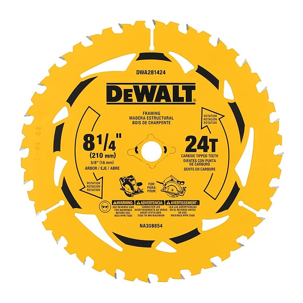 Circular Saw Blade, Arbor Size 5/8 in, Number of Teeth 24, Metal Cutting Type Not Applicable, Wood Cutting Type Framing, Ripping, Cut Width 0.09 in, Tip Material Carbide, Includes (10) Blades, Package Quantity 10