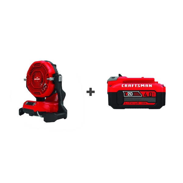 Misting Fan Kit, Battery Platform V20*, Blade Diameter 7 1/2 in, Air Flow 515 cfm, Mount Type Wall-Mount, Oscillation Non-Oscillating, Battery Capacity 4.0 Ah, Voltage 20V DC, Power Source Cordless, Features Bucket Top Rails, Pivoting Head, Includes CMCB204, CMCE003 Misting Fan, Number of Batteries Included 1, Oscillation Angle Not Applicable, Overall Height 15 3/16 in, Overall Length 13 in