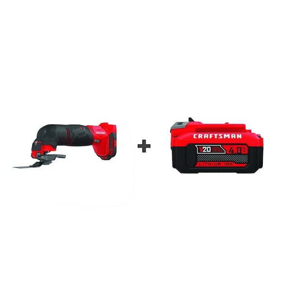 Oscillating Tool, Voltage 20V DC, Oscillation Angle 2.8 Degrees , Maximum Oscillations per Minute 18,000 OPM, Accessory Free Tool Change Yes, Brushless Motor No, Battery Capacity 4.0 Ah, Connection Style Universal, Switch Type Dial, Handle Type In-Line