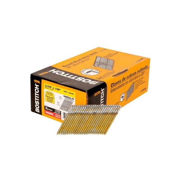 28-degree wire collated full round head stick framing nails have a thickcoat finish with a diamond point and ring shank. Use with bostitch tool n79ww, n80sb, n86s, n88wwb, n100s, f28ww.