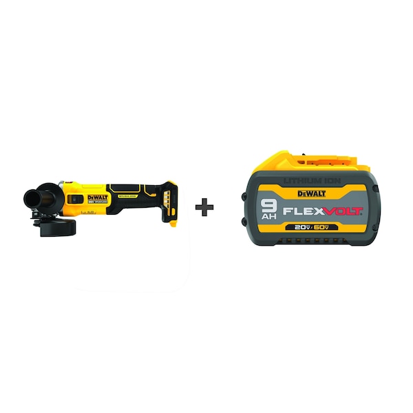 Angle Grinder, Head Type Standard Head, Voltage 20V DC, Wheel Diameter 4 1/2 in, Brushless Motor Yes, Battery Capacity 9.0 Ah, Safety Features Anti-Rotation System, Lock-On Switch, Overload Protection, Switch Type Slide, Switch Location Side, Number of Speed Settings Variable, Tether Style Not Tether Capable