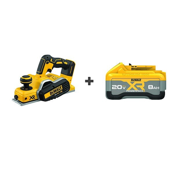 Planer Kit, Power Source Cordless, Battery Platform 20V MAX*, Voltage 20 V DC, Blade Width 3 1/4 in, Maximum Planer Depth of Cut 1/16 in, Number of Depth Settings 20, Maximum Speed 16,000 RPM, Motor Type Brushless, Blade Material Carbide, Cordless Tool Kit Contents (1) Battery, Battery Capacity (1) 8.0 Ah, Number of Batteries Included 1, Maximum Material Width 3 1/4 in, Battery Included / Bare Tool Battery Included, Tool Weight 6.8 lb, Cuts per Minute 30,000, Dust Collection Not Included