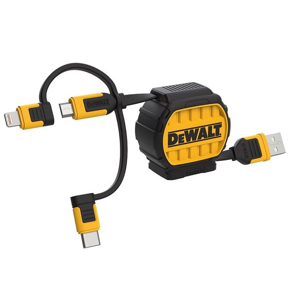 DeWalt USB to Micro to Type C 3-in-1 Cable 3 ft. Black/Yellow