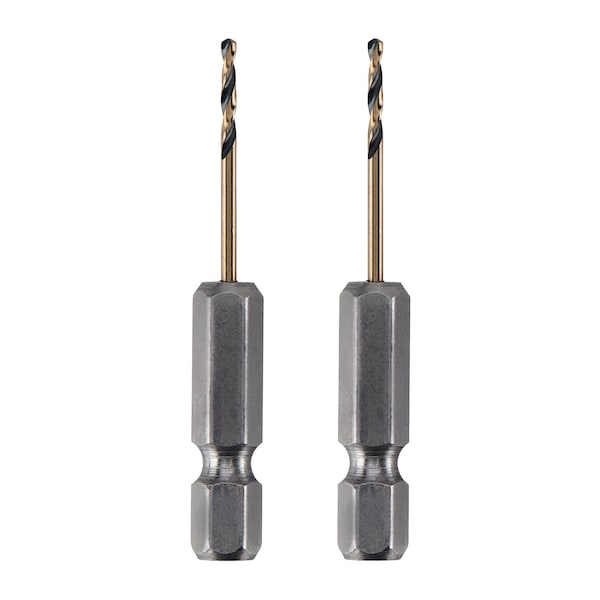 Hex Shank Drill Bit, 1/16 in, Drill Bit Point Angle 118 Degrees , Drill Bit Point Type Chisel Point, High Speed Steel, Black and Gold, Package Quantity 2