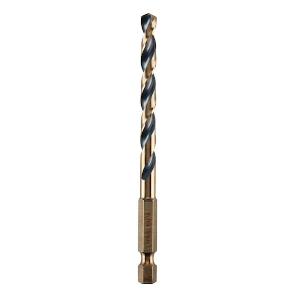 Hex Shank Drill Bit, 15/64 in, Drill Bit Point Angle 135 Degrees , Drill Bit Point Type Split Point, High Speed Steel, Black and Gold