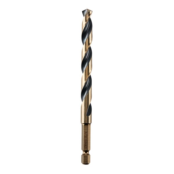 Hex Shank Drill Bit, 11/32 in, Drill Bit Point Angle 135 Degrees , Drill Bit Point Type Split Point, High Speed Steel, Black and Gold
