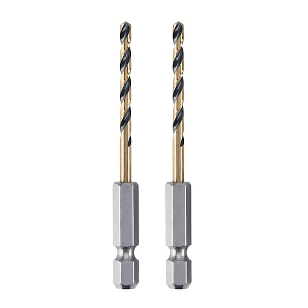 Hex Shank Drill Bit, 1/8 in, Drill Bit Point Angle 135 Degrees , Drill Bit Point Type Split Point, High Speed Steel, Black and Gold, Package Quantity 2