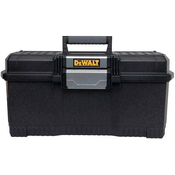 The DEWALT - DWST24082, part of the DWST series, is a One Touch Tool Box designed for convenient and efficient storage. This toolbox is constructed from durable plastic material and features a carrying handle for easy transportation. The box's unique one-handed latch operation allows you to open it with just one hand, providing quick access to your tools when needed. It comes as an individual unit with an interior dimension of 610 mm x 275 mm x 285 mm.