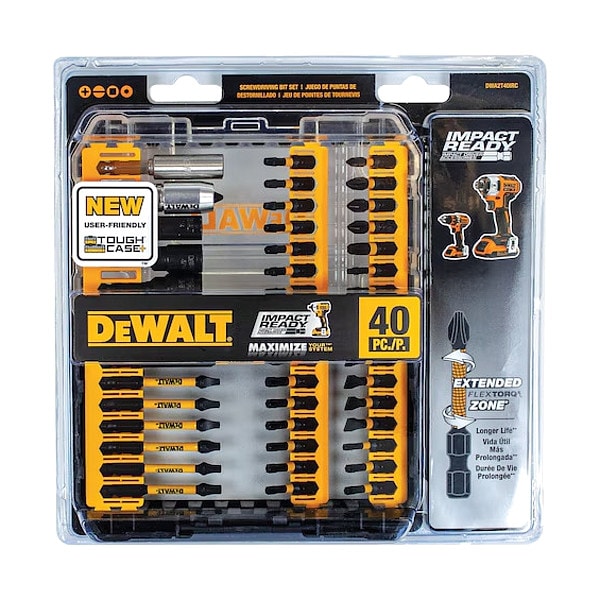 - The DEWALT - DWA2T40IR Screwdriver Bit Set is a versatile and essential tool for various industrial settings. This 40-piece set includes different types and sizes of bits that are used with a screwdriver or drill for driving or removing screws, enhancing the functionality of your tools.