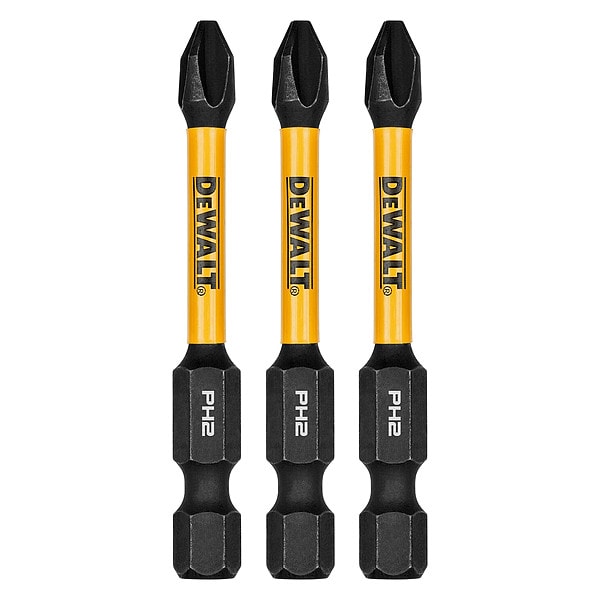 Power Bit, Application - Tools Impact, Bit Style FLEXTORQ(R), Fastening Tool Tip Size PH2, Shank Style Hex, Hex Shank Size 1/4 in, Single End, Fastening Tool Material S2 Steel, Overall Bit Length 2 1/4 in, SAE, Finish Black Manganese Phosphate, Impact Rated Impact Rated, For Use With Drill, Impact Driver, Screwdriver Bit, Package Quantity 3