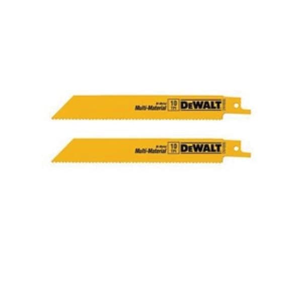DEWALT RECIPROCATING SAW BLADE, GENERAL PURPOSE STRAIGHT BACK, 6 IN LENGTH, 3/4 IN WIDTH, 10, REINFORCED/RAKER TEETH, BI-METAL CUTTING EDGE, BI-METAL BODY, ANTI-RUST COATED, YELLOW, APPLICABLE MATERIALS: MULTI-MATERIAL