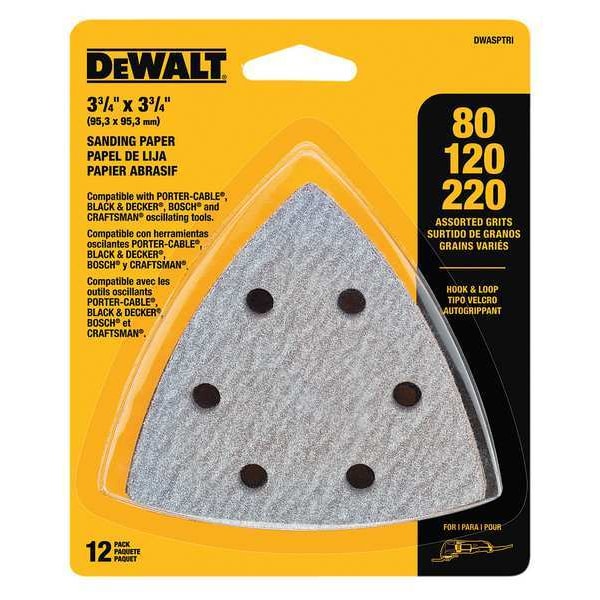 Sanding Sheet Set, Shape Triangle, Grit 80, 120, 220, Abrasive Material Silicon Carbide, Length 3 1/2 in, Abrasive Color Gray, Backing Type Hook-and-Loop, Material Application Wood, For Tool Type Oscillating Tool, Flexible Not Flexible, Number of Sheets 12, Features Long Life, Universal Fitment, Package Quantity 12