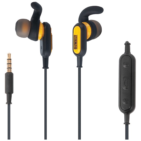 Jobsite Earphones, Wired, 3.5mm, Material Plastic, Metal, Features Volume Control, Playback, Color Black, Yellow, Product Type Earbuds, For Use With Cell Phones, Tablets, Includes Ear Cushions