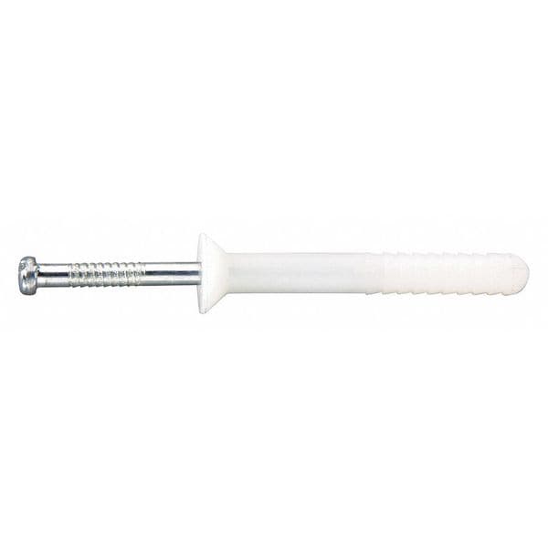 Hammer Drive Pin Anchor, Anchor Diameter 1/4 in, Overall Length 2 in, Thread Size Not Applicable, Thread Length Not Applicable, Anchor Material Nylon, Pin Material Steel, Finish Plain, Head Type Flat, Head Diameter 0.4375 in, Head Height 0.125 in, Nut Width Not Applicable, Washer Outside Diameter Not Applicable, Drill Bit Size 1/4 in, Minimum Installation Depth 5/8 in, Maximum Material Thickness 1 3/8 in, Pin-Drive Anchor Type Nylon Removable Nail Drive Anchor, System of Measurement Inch