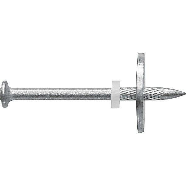 Pin Drive Anchor, Anchor Diameter 5/32 in, Overall Length 2 7/8 in, Thread Size Not Applicable, Thread Length Not Applicable, Anchor Material Steel, Pin Material steel, Finish Zinc Plated, Head Type Round, Head Diameter 8 mm, Head Height Not Applicable, Nut Width Not Applicable, Washer Outside Diameter 1 in, Drill Bit Size Not Applicable, Minimum Installation Depth 5/8 in, Maximum Material Thickness Not Applicable, Ultimate Shear Strength (4,000 psi Concrete) Not Applicable