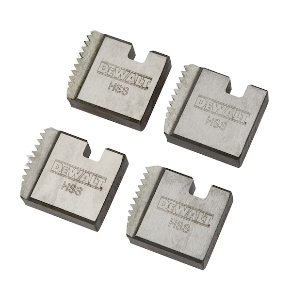 Threading Machine Die Head Set, Compatible Pipe Size 2 in, Compatible Material Type Stainless Steel, Thread Type NPT, Compatible Thread Direction Right Hand, Die Material High Speed Steel, Die Head Compatibility DEWALT Handheld, Compatible Threader Series DCE700, Application Pipe, Number of Dies 4, Threads Per Inch 11 1/2, Compatible Threader Type Handheld Manual & Power Threaders, Compatible Die Head Manufacturer Part Number DCE700