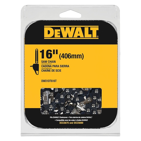 Our durable 16 in. Replacement Saw Chain is designed to fit 16 in. bars on the DEWALT® 60V MAX* Cordless Chainsaw (DCCS670). This low-vibration chain is designed to cut smooth and fast with minimum kickback.