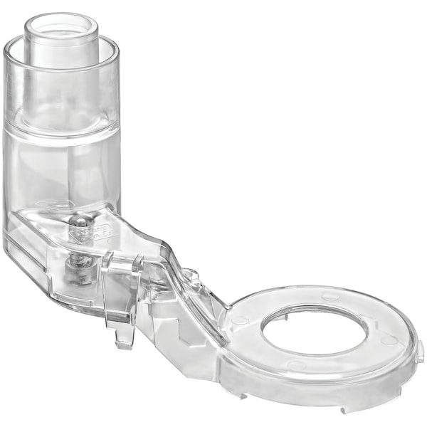 The DEWALT DNP616 Compact Router Dust Collection Adapter is intended for use with compatible router models for dust collection purposes. This accessory attaches directly to your router, providing a connection point for vacuum hoses and is intended to support bit visibility during operation.